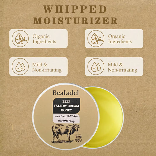 Whipped Beef Tallow and Honey Balm Moisturizing Beef Tallow Face Cream Body Lotion Grass Fed Grass Finished Face Cream Care
